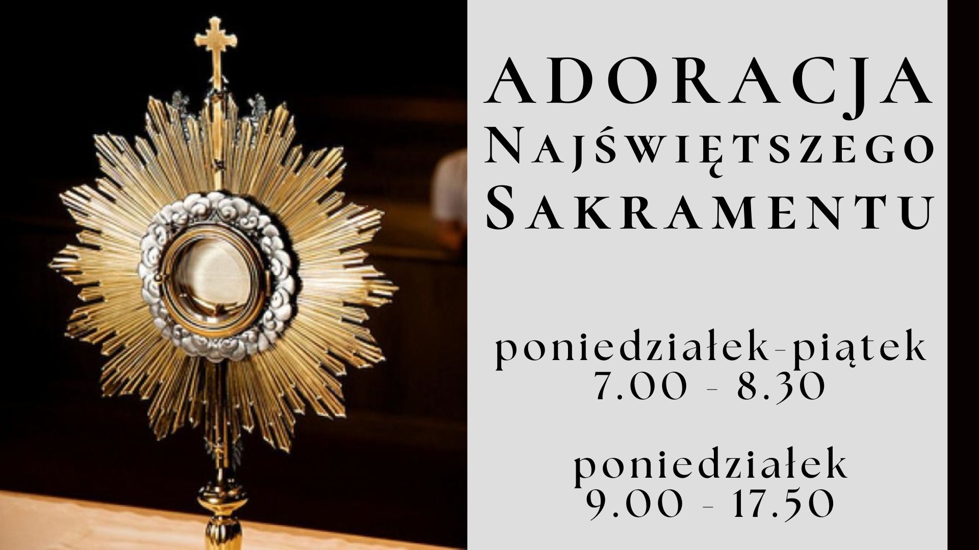 Aby nie zaniedbać obowiązków duszpasterskich, a równocześnie zapewnić codzienną możliwość modlitwy przed Najświętszym Sakramentem, ustalamy stały czas adoracji: od poniedziałku do piątku, po Mszy św. o 6.30 będzie wystawienie Najświętszego Sakramentu do Mszy św. o 8.30półtorej godziny cichej modlitwy.